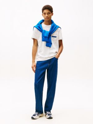 This pure cotton T-shirt offers a playful, workwear-inspired look with its contrasting branding on the chest pocket and back.