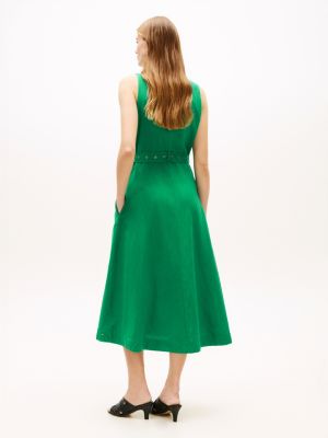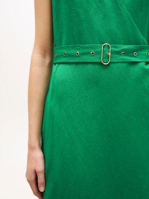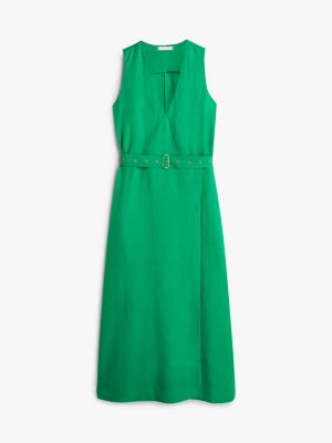 Belted Linen Blend Sleeveless Wrap Midi Dress