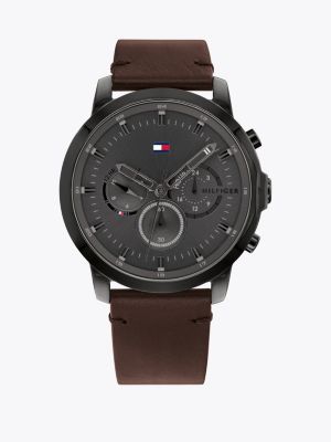 The unique character of this watch is defined by its black ionic-plated stainless steel design case and informative sub-counters.