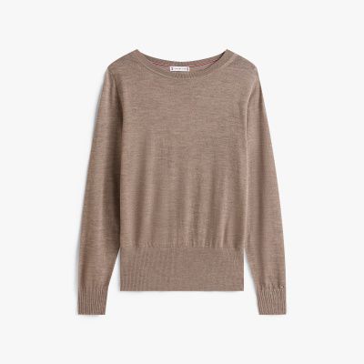 Featuring a feminine boat neckline and intricate cable-knit detailing on the cuffs, this pure wool jumper works from day to evening.