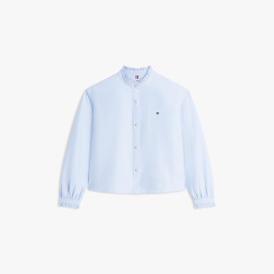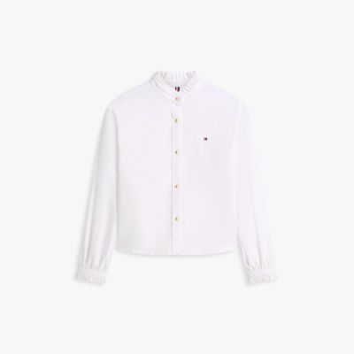 Embrace sophistication with feminine flair in this pure Oxford cotton shirt, cut in a contemporary boxy silhouette and featuring considered ruffled touches.