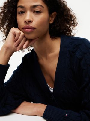 This V-neck cardigan with flag embroidery is a cosy layer, its oversized fit enhanced by softened shoulders and a tactile cable-knit design.