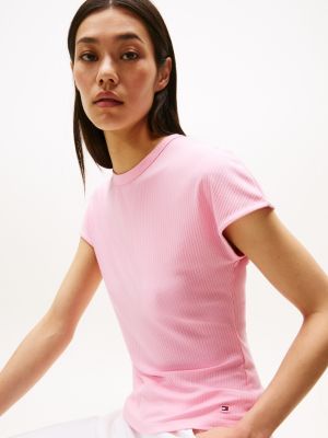 The high crew neck and capped sleeves of this slim-fitting, ribbed T-shirt put a more sophisticated spin on an everyday essential.
