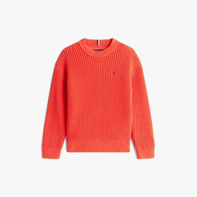 This cosy crew-neck jumper is knitted with a thick half-cardigan stitch, giving it a distinctive texture and a snug feel.