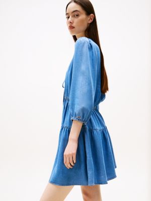 This mini dress brings a feminine feel to your denim repertoire with its tiered skirt and figure-defining fit.