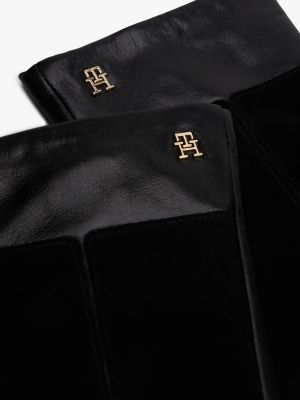 These soft leather gloves combine a smooth palm with a suede back for a play on textures, signed with a TH monogram.