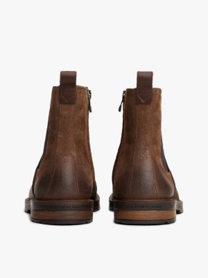 These suede Chelsea boots are elevated by signature detailing on the elasticated side panels, while the side zips are a practical touch.