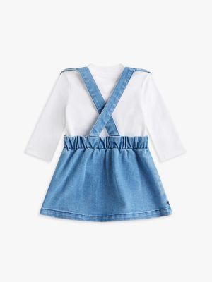 Denim Dungaree Dress And T-Shirt Set