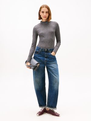 Be ready for festivities in this long-sleeved top, woven with twinkling metallic threads and cut to a figure-hugging slim fit.