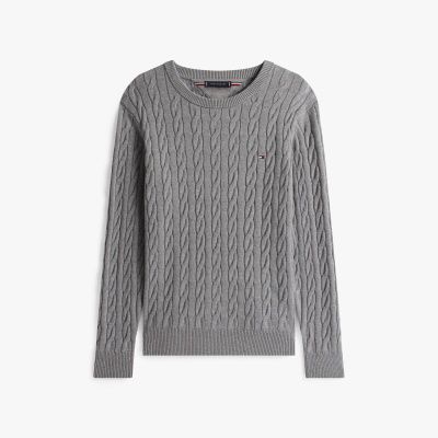 The traditional cable-knit pattern adds timeless appeal to this versatile jumper that's crafted from pure combed cotton and finished with flag embroidery.