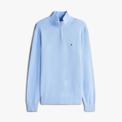 This mock neck jumper with refined flag detail on the chest has a half-zip closure, so you can adjust the look.