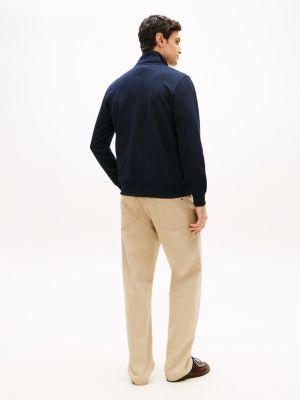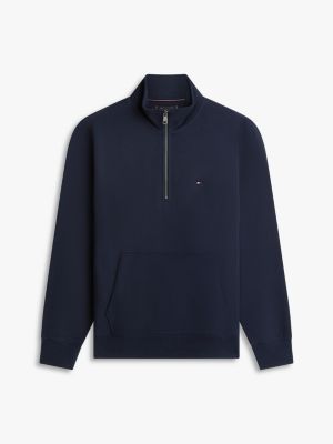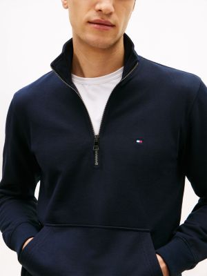 This terry quarter-zip jumper with a funnel neck and kangaroo pocket offers laid-back layering when the temperature cools.