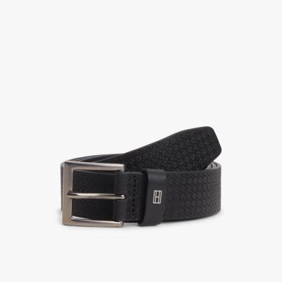 Flag Print Square Buckle Leather Belt