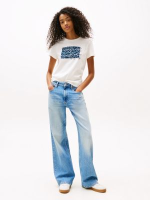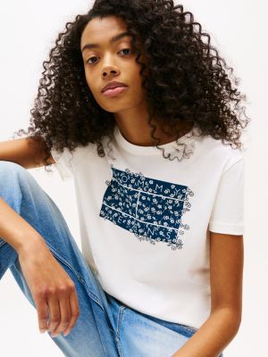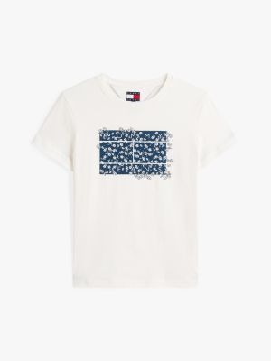Bring a feminine flourish to relaxed days with this pure cotton T-shirt, featuring a Tommy Jeans floral logo on the chest.