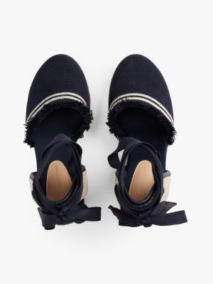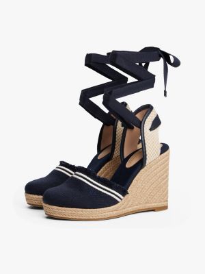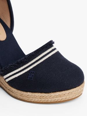 These canvas espadrilles with a high wedge heel feature braided rope midsoles and fringing on the uppers for a stylishly feminine silhouette.