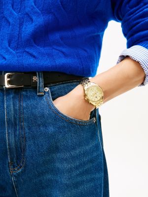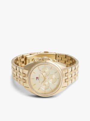 • Gold-tone chronograph dial