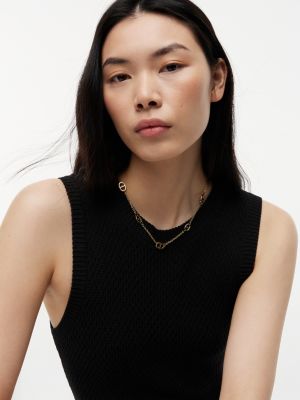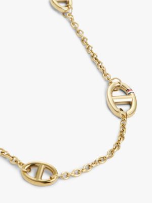 This versatile necklace plays with shape and texture by combining a fine chain with larger mariner links featuring touches of signature branding.