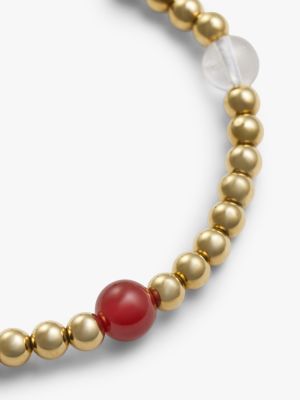 This spirited bracelet has a beaded design featuring white quartz, sodalite, red agate and turquoise for a contemporary take on bohemian style.