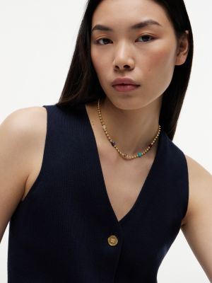 Add a touch of bohemian-inspired elegance to your look with this gold-plated beaded necklace featuring white quartz, sodalite, red agate and turquoise.