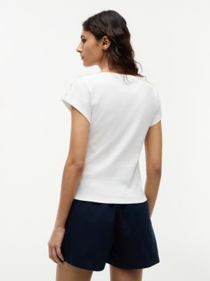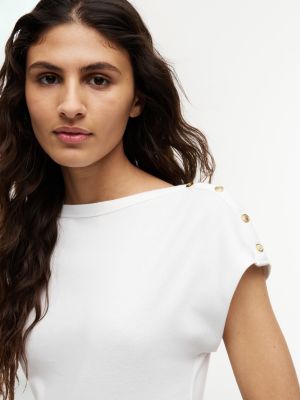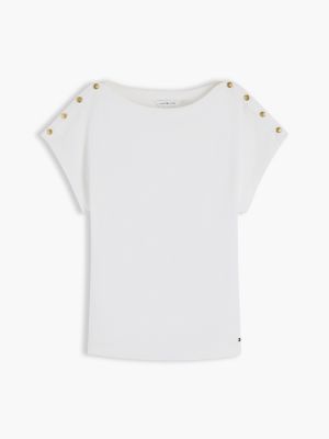 Gold-Tone Button Boat Neck T-Shirt