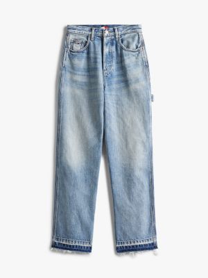 These laid-back jeans are cut in a straight leg silhouette with a flattering high-rise waist and feature frayed hems.