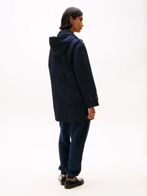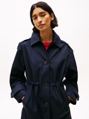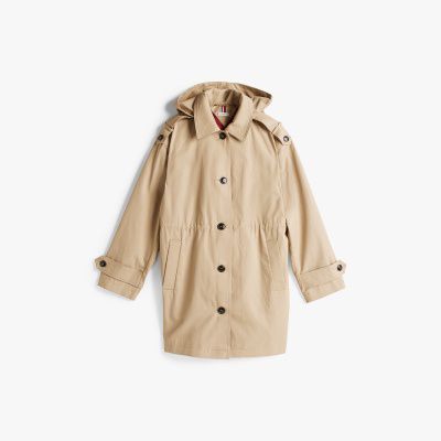 This water-repellent parka borrows its look from the trench coat, and features a hood plus a drawstring waist for practical style.