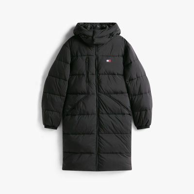 Take a maximalist approach to cold-weather style with this water-repellent padded parka coat, featuring a modern longline shape and a removable hood.