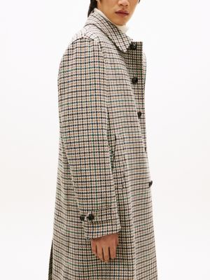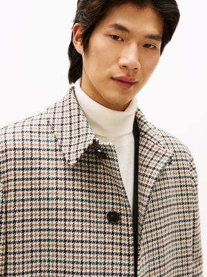 This single-breasted coat showcases a houndstooth check design on the premium wool-blend fabric for a classic, put-together look.
