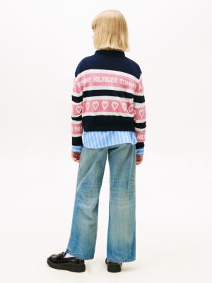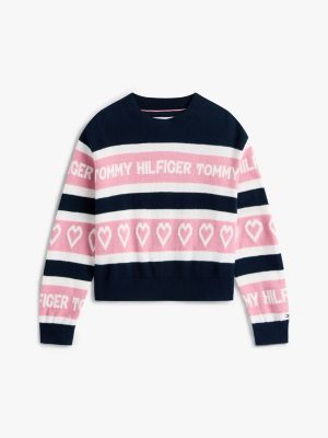 Present an eye-catching look with this cotton-blend relaxed jumper, knitted with an intarsia repeat logo and heart stripe pattern.