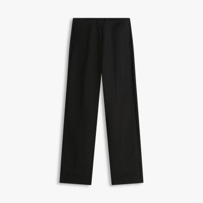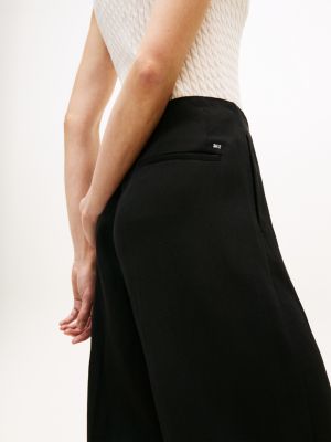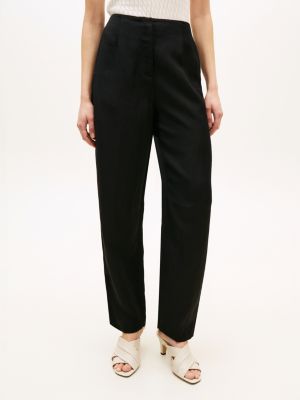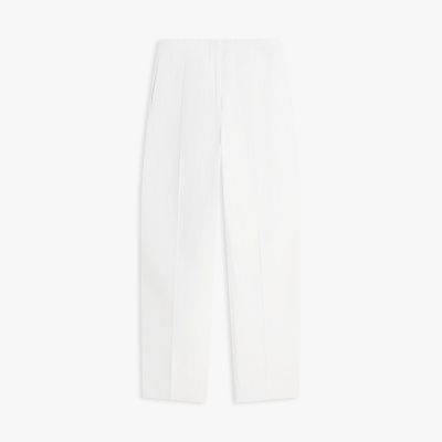 These tailored barrel-leg trousers are cut to a refined ankle-grazing length from linen-blend twill, finished with luxe metal flag detailing.