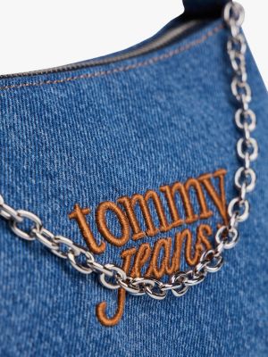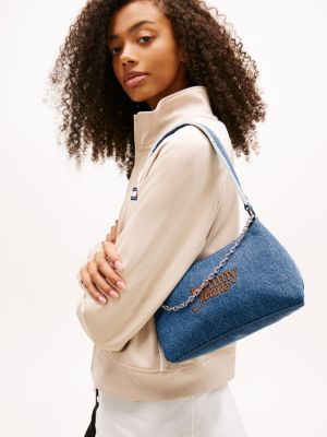 This denim shoulder bag is an elevated take on a Y2K-inspired favourite, with its glinting hardware and contrast logo embroidery.