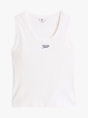 Ideal alone or for a base layer, this ribbed tank top has a slim fit and a script logo highlighting the chest.
