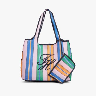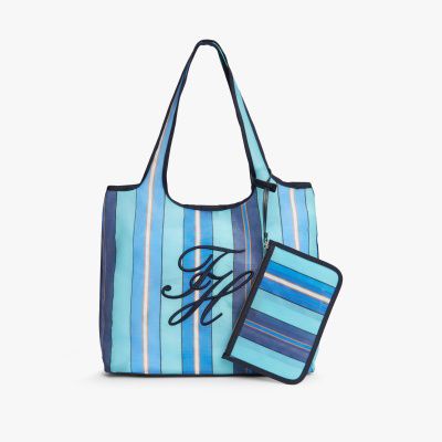 Perfectly practical for days in the city or at the beach, this standout mesh tote bag comes with a handy matching pouch.