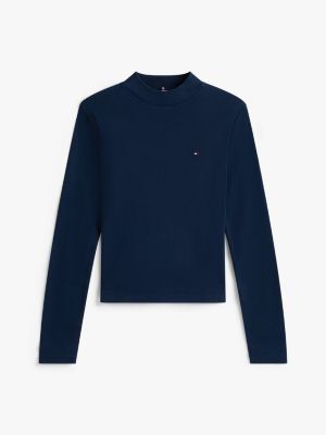 This slim-fitting long-sleeved top is crafted from ribbed-texture pure cotton and features a mock neck, creating a chic look.