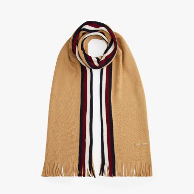 This scarf brings a touch of heritage to your outfits thanks to its classic fringed design and signature tape adding stripe detailing.