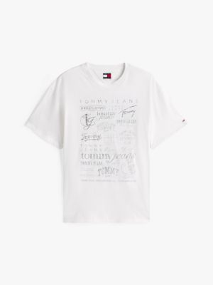 Bring a retro feel to outfits with this T-shirt, cut to a laid-back relaxed fit and featuring multiple heritage Tommy Jeans logos.