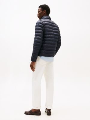 The jacket's compact design easily fits into a rucksack when packed, so it's ideal for travel or the journey to work in unpredictable weather. Its modern, quilted nylon finish looks smart enough on its own, while the overall feel allows for layering under your coat for maximum versatility. A stand-up collar provides extra protection from the cold while keeping the silhouette streamlined. Two zipped pockets on the front are useful for storage as well as warming the hands. Premium branding comes in the form of signature tape inside the neckline and flag embroidery on the chest. Even the pocket zip pulls feature branded detailing.