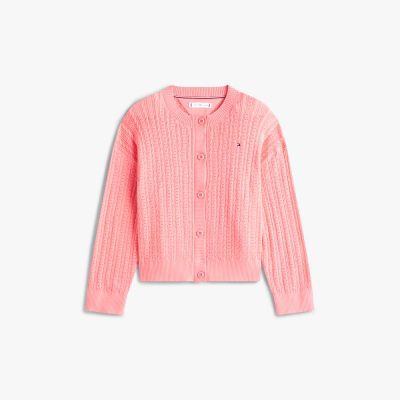 An ideal breathable layer, this cardigan is made from pure cotton featuring a charming combination of pointelle and cable-knit textures.