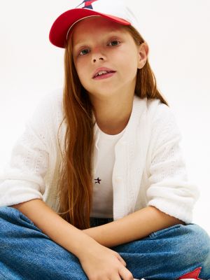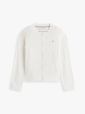 An ideal breathable layer, this cardigan is made from pure cotton featuring a charming combination of pointelle and cable-knit textures.