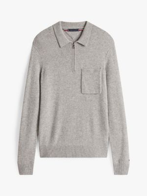 This polo jumper is crafted from pure wool for a luxuriously warm feel, while the zipped neckline adds a sporty touch.