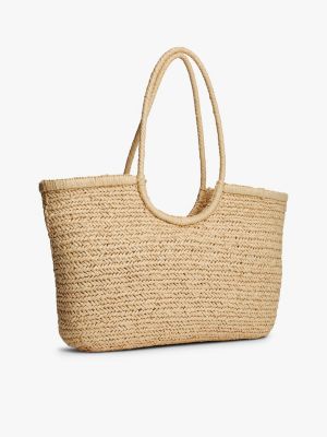 Raffia Textured Logo Tote Bag