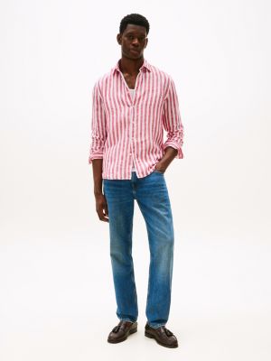 This regular-fit shirt is decorated with classic stripes for a timeless look, while the linen fabric gives it a breezy feel.