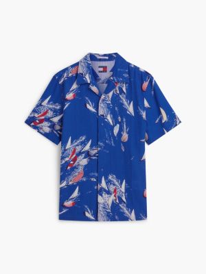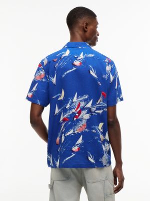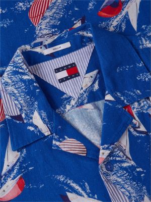 Be ready for holidays with this airy linen-blend shirt, its chilled Cuban collar and short sleeves animated by an all-over print.