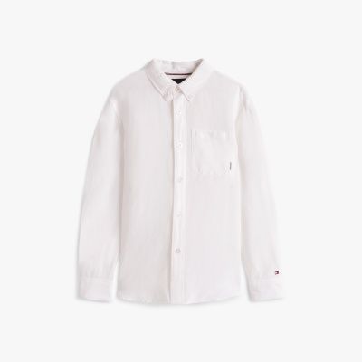 When the occasion calls for something smart, pick this linen-blend shirt with a sophisticated button-down collar and discreet flag embroidery.