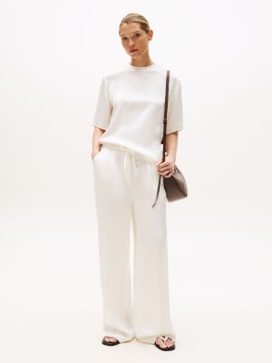 This classic T-shirt is elevated by its soft drape and luxe sateen fabric, counterbalanced by an easy-going relaxed fit and dropped shoulders.