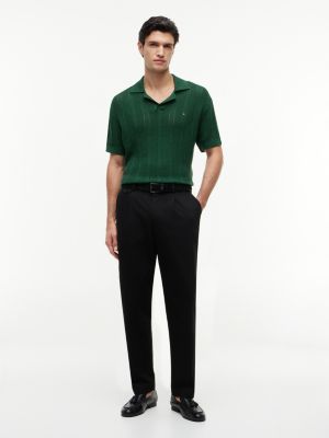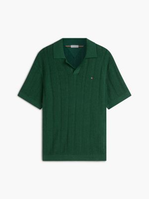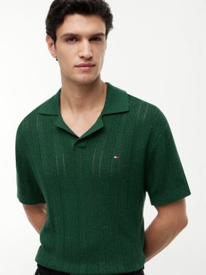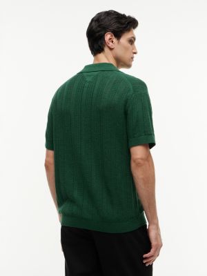 Relaxed Pointelle Structured Polo Shirt With Linen