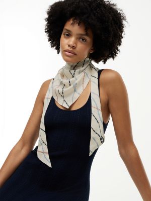 Complete your look in chic Riviera-inspired style with this scarf, woven from fluid pure silk featuring a nautical rope print.