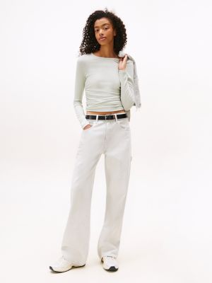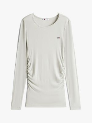 The ruched seams add a delicate touch to this long-sleeve ribbed top, cut to a sleek slim fit with understated flag detail.