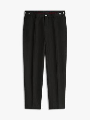 Dress for dinner in these yarn-dyed pure linen trousers, featuring pressed creases and tailored adjustable waist tabs completing the tapered-leg design.
