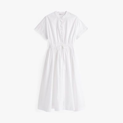 The smocking around the waist of this midi-length dress creates movement in the skirt for a lightweight silhouette.
